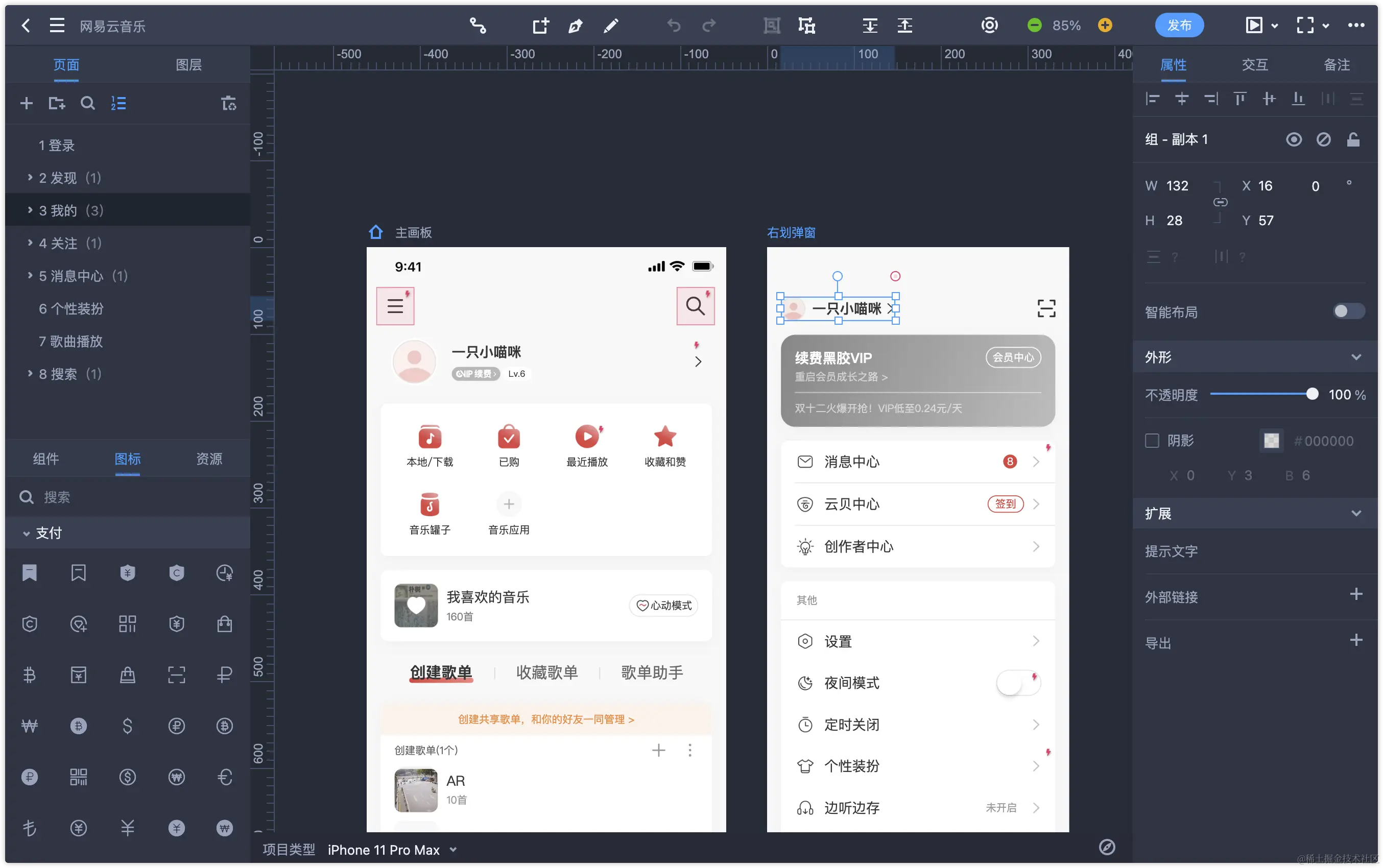 4、即时设计:团队前身是原型设计工具xiaopiu,但近年来已经转型做Figma系设计工具。而xiaopiu因不支持导入Axure,且已停止更新,故无缘本次测评。