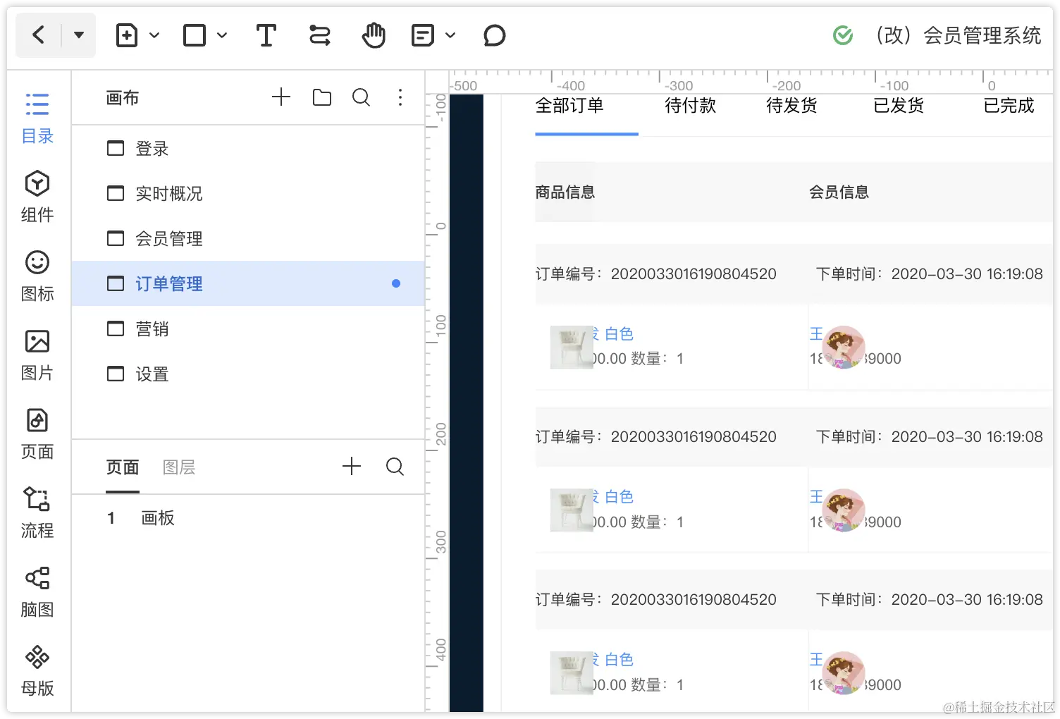 只有Mastergo还稍微做些了考虑,他是将所有Axure页面转成了一个页面中的多个画板,以此来保留了页面跳转。但所有页面变成一个页面中的无数个画板,管理起来也很麻烦,很难说这是个比较好的做法。