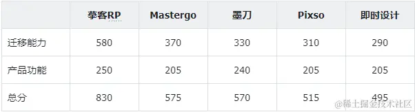 合计一下得分可以看出,在Axure项目的迁移能力上,摹客RP可以算是断层领先的。