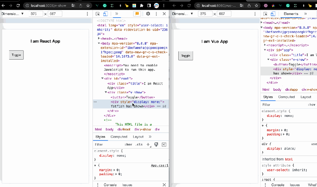 你可能已经猜到了,我们可以使用 v-show 来实现与它相同的功能。看起来 Vue 更简洁,你不觉得吗?