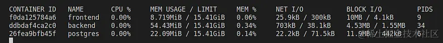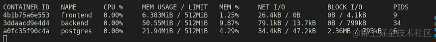 如果在Docker Compose中没有为容器设置资源限制,它将使用主机PC的全部RAM和CPU限制。要检查容器的RAM和CPU使用情况,可以使用docker stats命令。