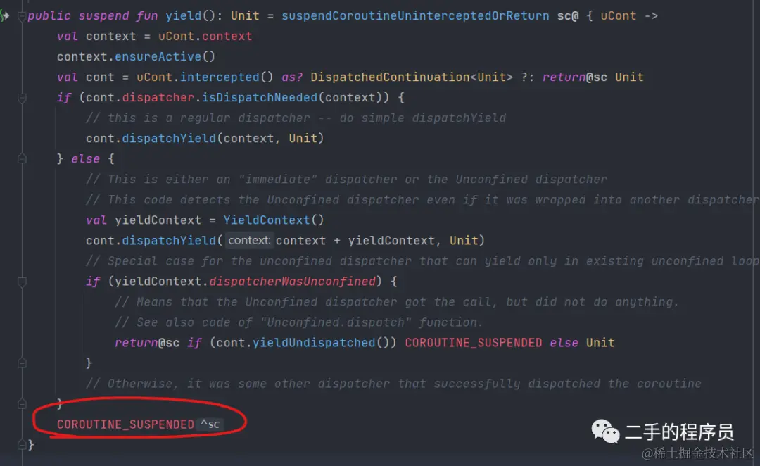 yield 函数是一个比较典型的例子,有助于我们理解其他的挂起函数。