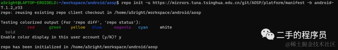repo init -u https://mirrors.tuna.tsinghua.edu.cn/git/AOSP/platform/manifest -b android-7.1.2_r33 --depth=1