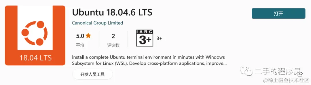 首先在 microsoft store 里面安装ubuntu版本,我选择的是 ubuntu 18.04: