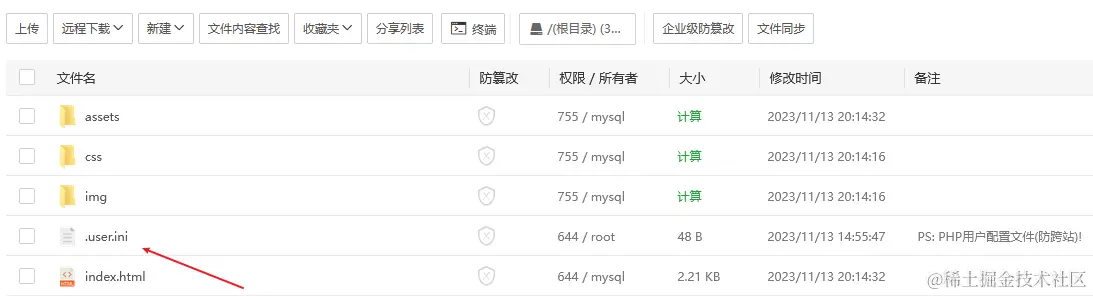 原因分析:.user.ini文件无权删除,git action需要删除这个问题,但权限不够