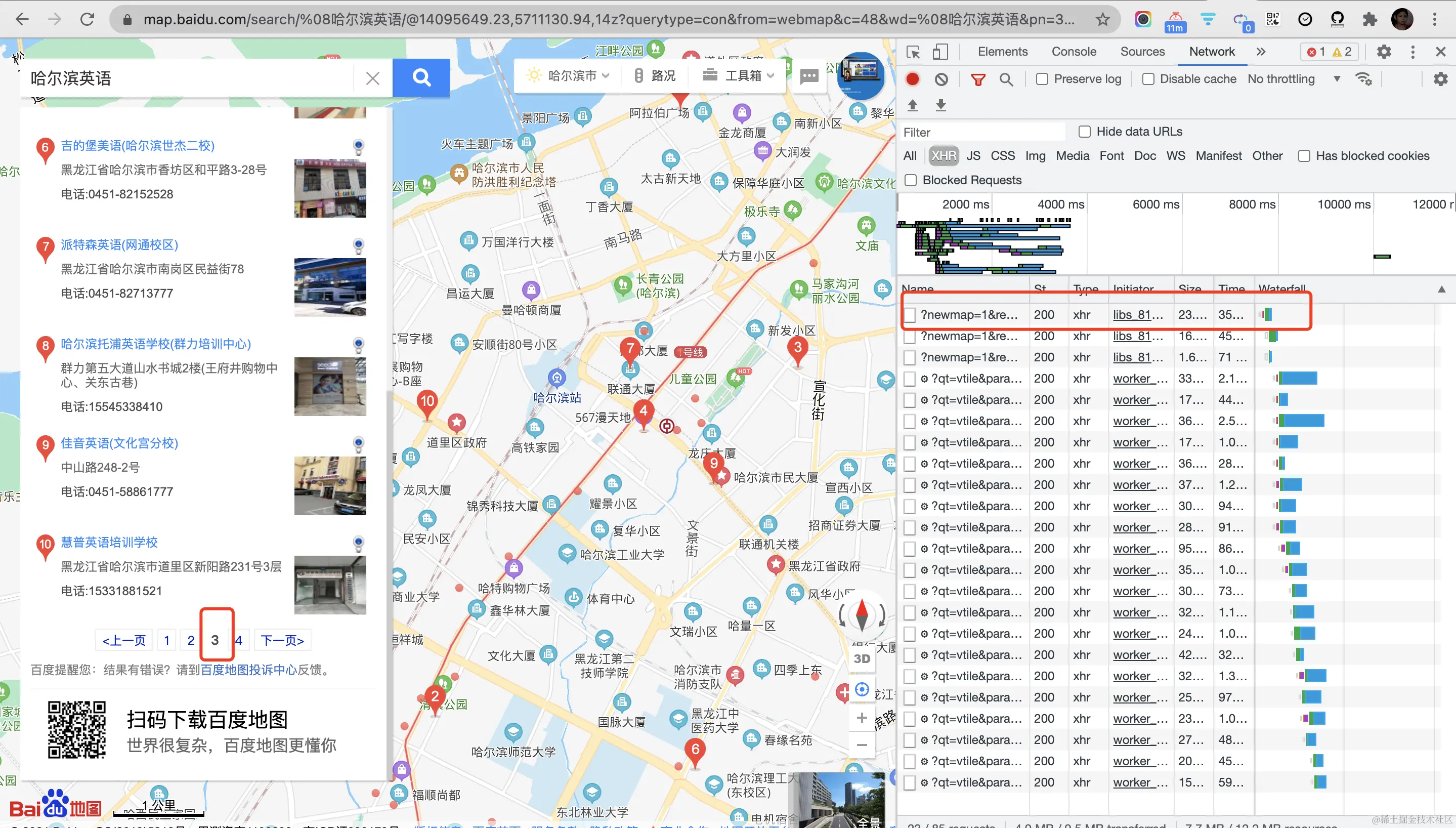(3). 点击左侧下方的页码,如第3页. 这时在控制台就发现有新的接口请求