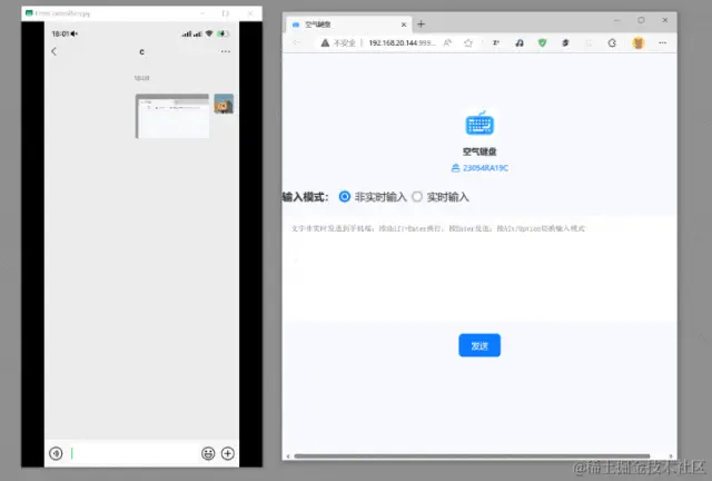 在电脑上使用空气键盘,操作十分简单,只需要将手机显示链接地址复制到浏览器中,就可以进入空气键盘的网页界面进行输入。