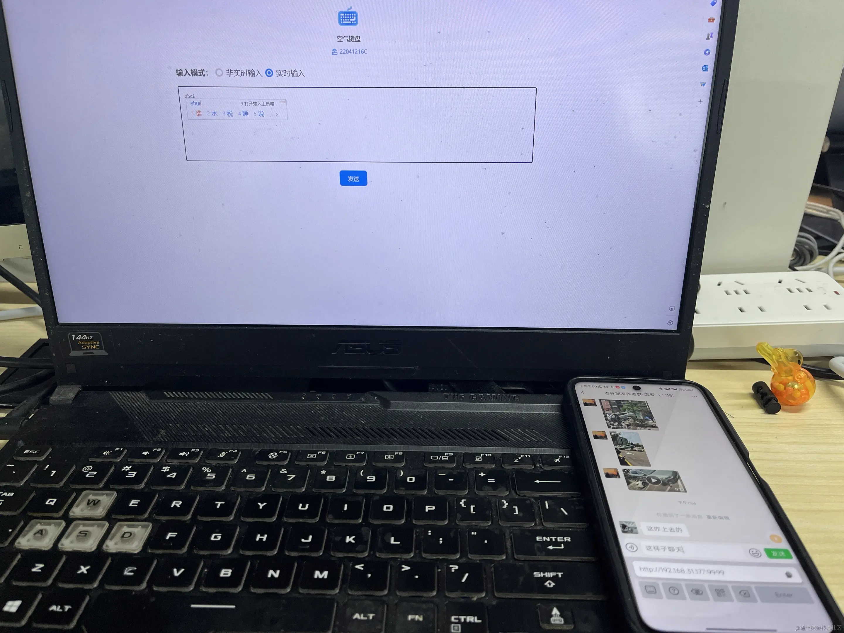 空气键盘还有图片传输的功能,在网页中粘贴图片,就可以发送到手机。所有聊天需要的操作都可以通过空气键盘完成,手机只需要放在旁边就可以了。