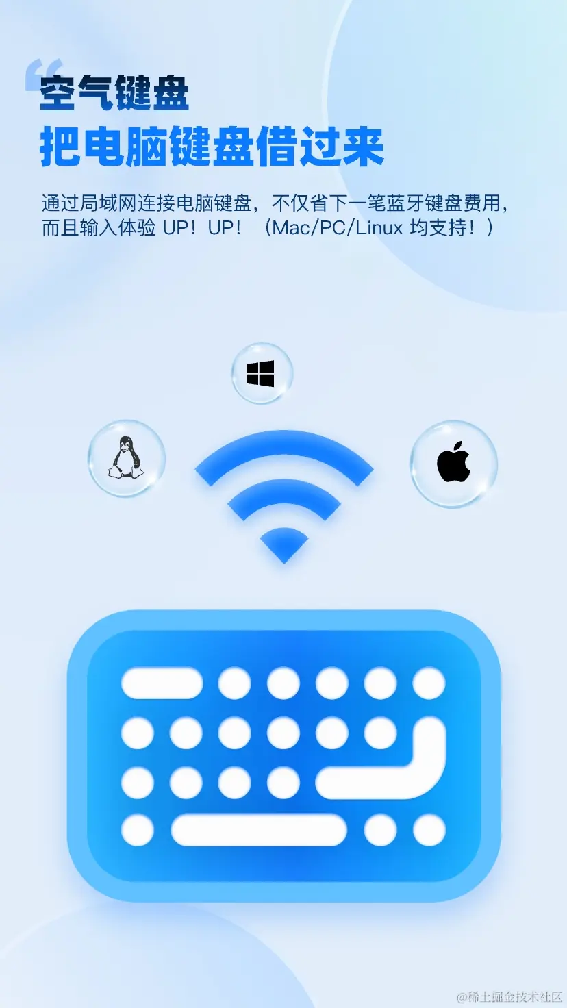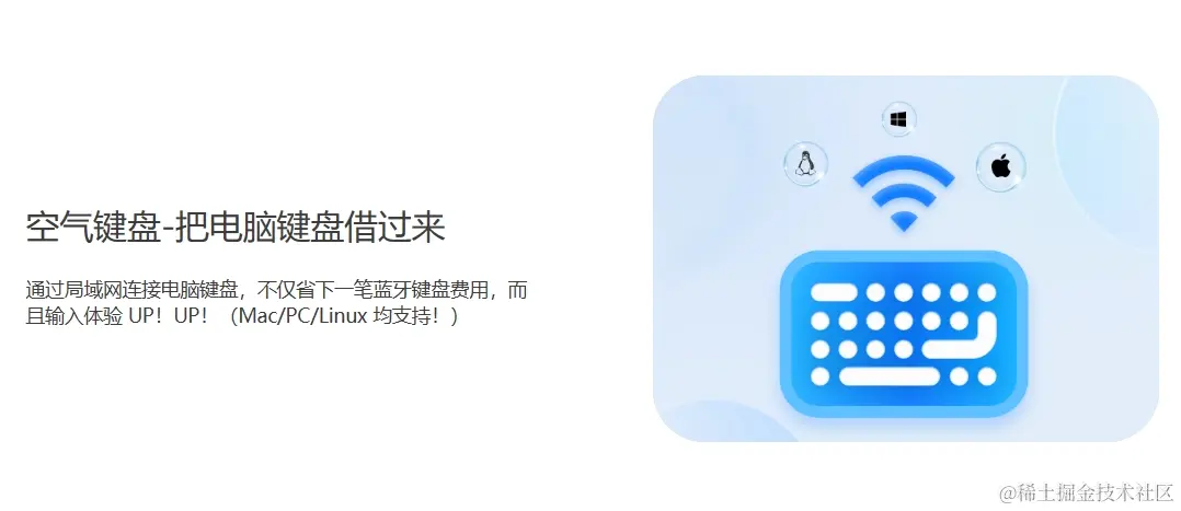 也是因为空气键盘在浏览器中进行输入的,所以它几乎没有平台的限制,Mac/PC/Linux均支持使用。
