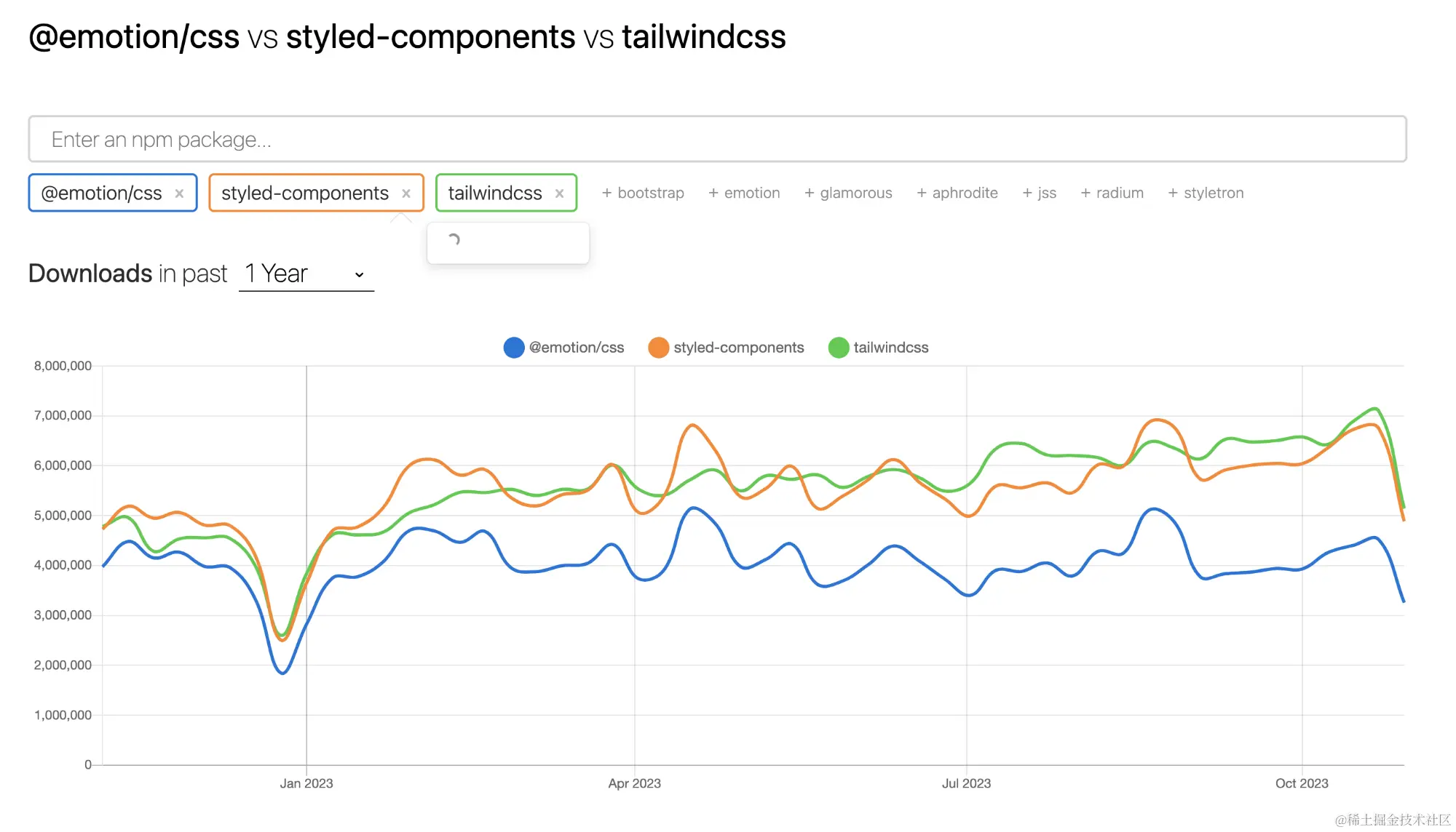 不能说是遥遥领先,但是也是和另外的css解决方案 - style components并驾齐驱。