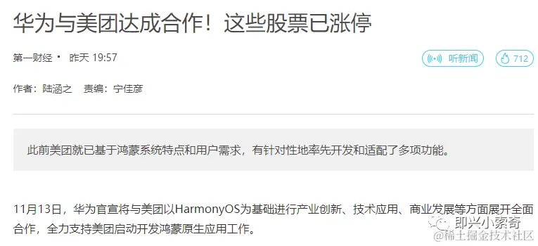 在华为最新发布的鸿蒙系统中,名为 HarmonyOS NEXT 的新版本底座全线自研,不再支持传统的 AOSP 代码,只能使用 Hap 格式的安装包,这意味着不再适配安卓应用。此举旨在彻底证明华为操作系统的独立性,摆脱对“套壳”安卓的依赖,并且显示出了华为鸿蒙系统的发展速度和实力。根据华为公布的数据显示,截至8月的时候,就已经有超过7亿台设备搭载了鸿蒙系统。 许多互联网公司开始积极布局鸿蒙生态,招聘鸿蒙相关岗位,给出高薪。网易发布了大量鸿蒙岗位招聘信息,包括云音乐多端鸿蒙系统等产品的研发迭代。美团发布的多个鸿蒙相关岗位,其中鸿蒙基建工程师的月薪在4万元到6万元之间。许多上市公司也积极招聘,如拓维信息、神州信息、软通动力、比亚迪等都在围绕鸿蒙生态吸纳人才。智联招聘数据显示,2023年1月至10月,鸿蒙相关岗位招聘薪资超过市场平均水平,达到17537元/月。