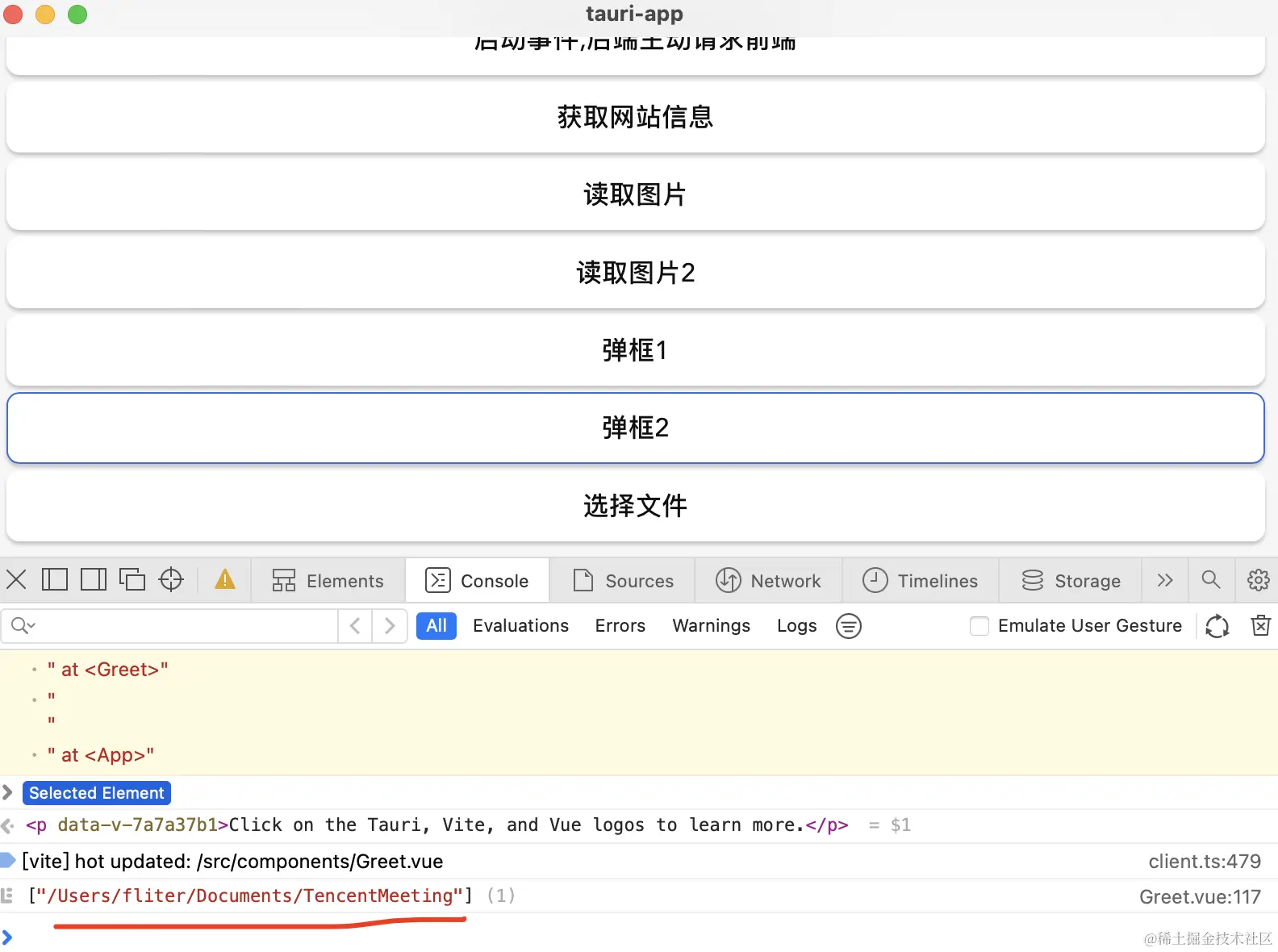 <button @click="myCustomCommand">点此按钮触发Rust方法</button>