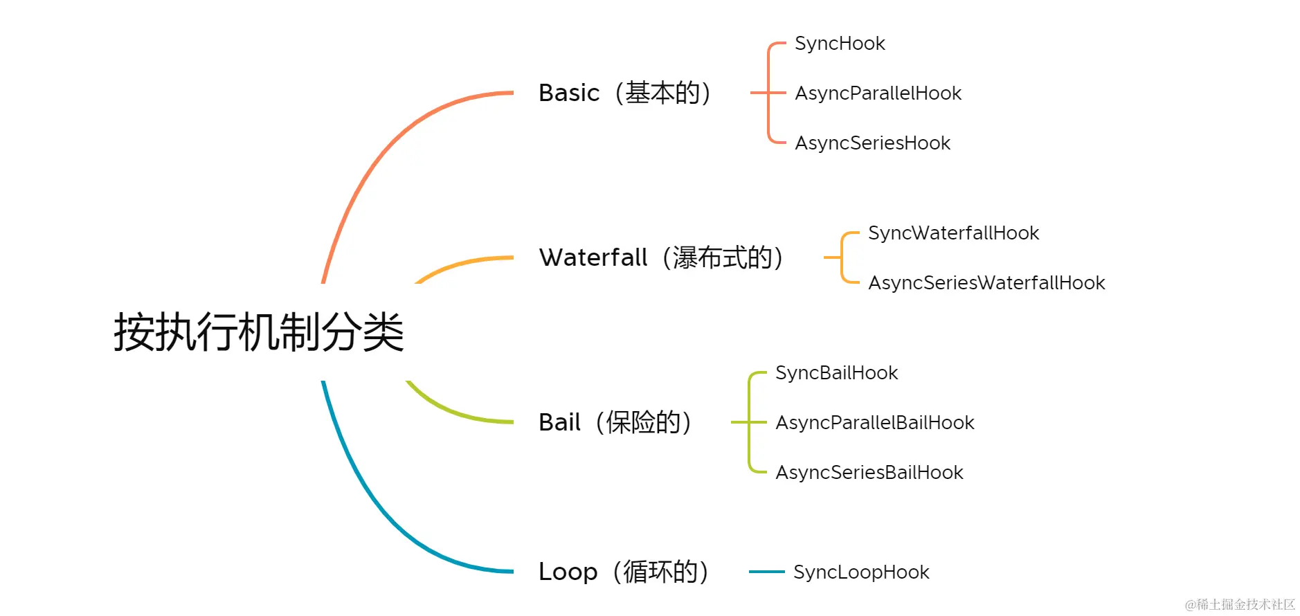 Tapable 是一个类似于 Node.js 中的 EventEmitter 的库,但它更专注于自定义事件的触发和处理。通过 Tapable 我们可以注册自定义事件,然后在适当的时机去执行自定义事件。类比到 Vue 和 React 框架中的生命周期函数,它们就是到了固定的时间节点就执行对应的生命周期。