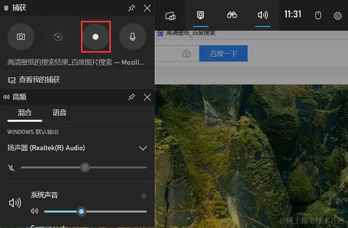 步骤2:在Xbox Game Bar的捕获界面上,点击 “录制” 按钮,或按下 “Win+Alt+R” 热键快速开启录屏。