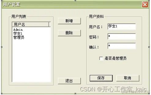 用户管理子模块负责对操作人员基本信息的建立,以及对操作人员的权限进行基本维护,不同权限的操作人员,可以使用的模块范围不一样。此模块功能只限于具有系统管理员权限的用户使用。用户管理子模块实现三个主要功能:添加新用户、修改用户口令和用户权限、删除指定的用户。