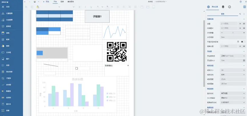 至于报表,则在内部集成了多种多样的效果组件,常规的表格、二维表格统计的矩表、图片、条形码、富文本等等,帮助制作出实用又漂亮的报表。