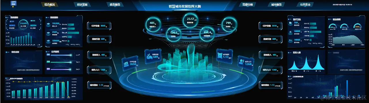 BI仪表板,内置了丰富图表组件,如柱形图、饼图、水球图,可以快速的设计出使用的BI大屏