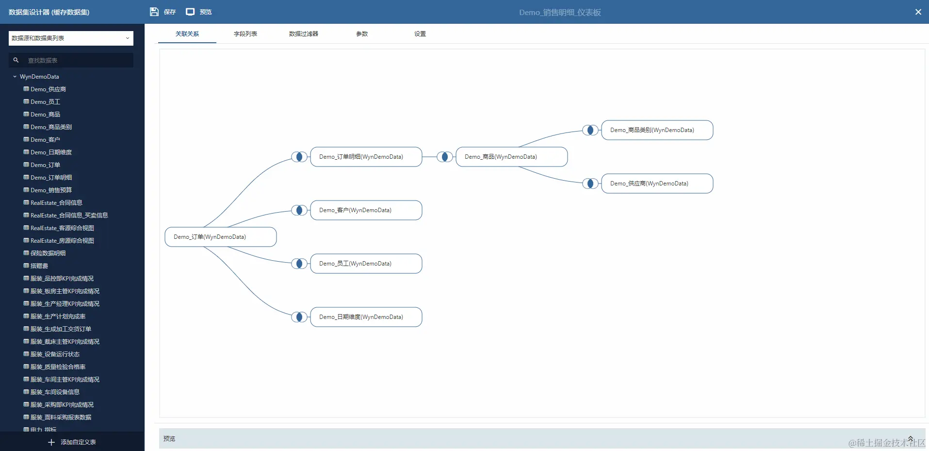 缓存数据集提供跨源数据查询并创建数据集,数据以缓存和刷新计划的方式进行同步,常用于数据实时性要求不高的分析场景。数据集的结果是一个"宽表"结构,相当于数据库中的左关联、右关联。所有的数据全部显示在一个表上