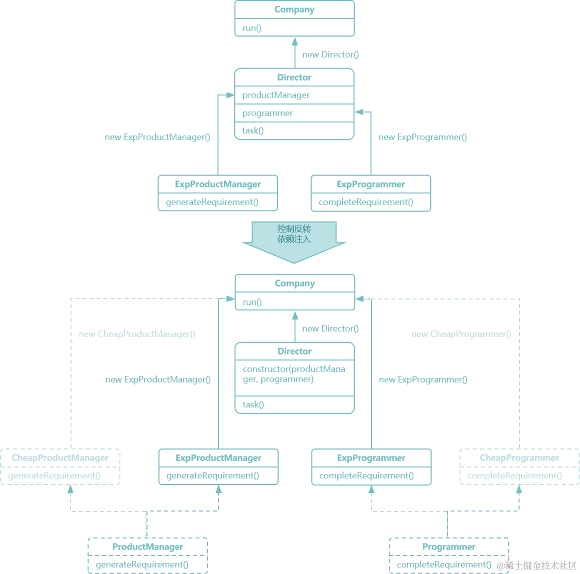 - 得益于 TypeScript 编译时会自动给类添加构造函数中的参数类型元数据,我们可以轻易取到服务类,示例中是