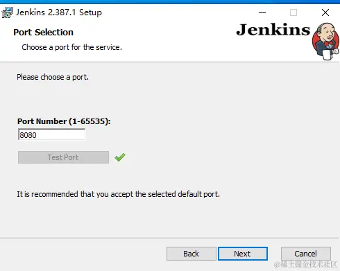 端口号默认8080,可进行修改,并点击Test Port按钮进行测试端口是否可用,点击“next”按钮进入下一步