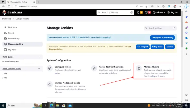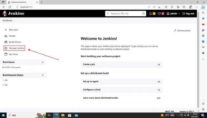 3.进入Jenkins(默认访问地址: http://localhost:8080,localhost为本机地址)