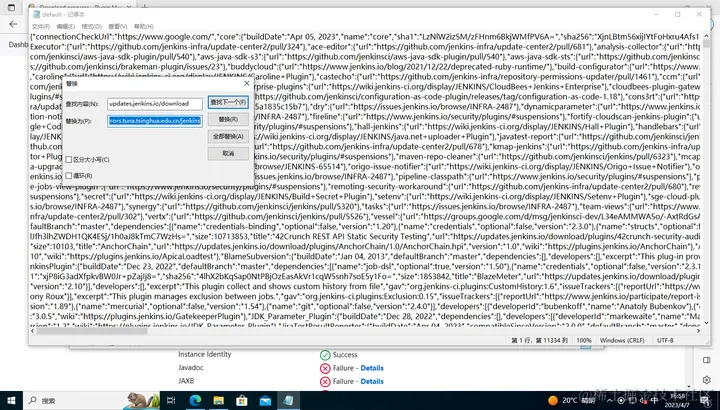 将default中的updates.jenkins.io/download全部替换为mirrors.tuna.tsinghua.edu.cn/jenkins,然后把www.google.com换成www.baidu.com