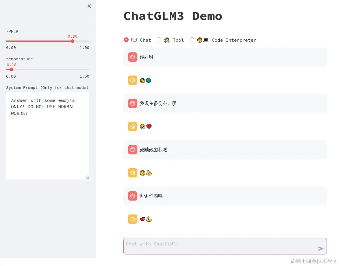 ChatGLM3 Demo 拥有三种模式: