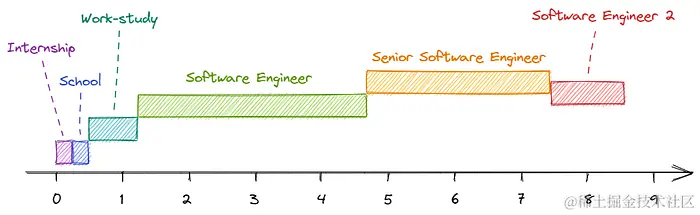 过去8.5年职业发展历程图示: