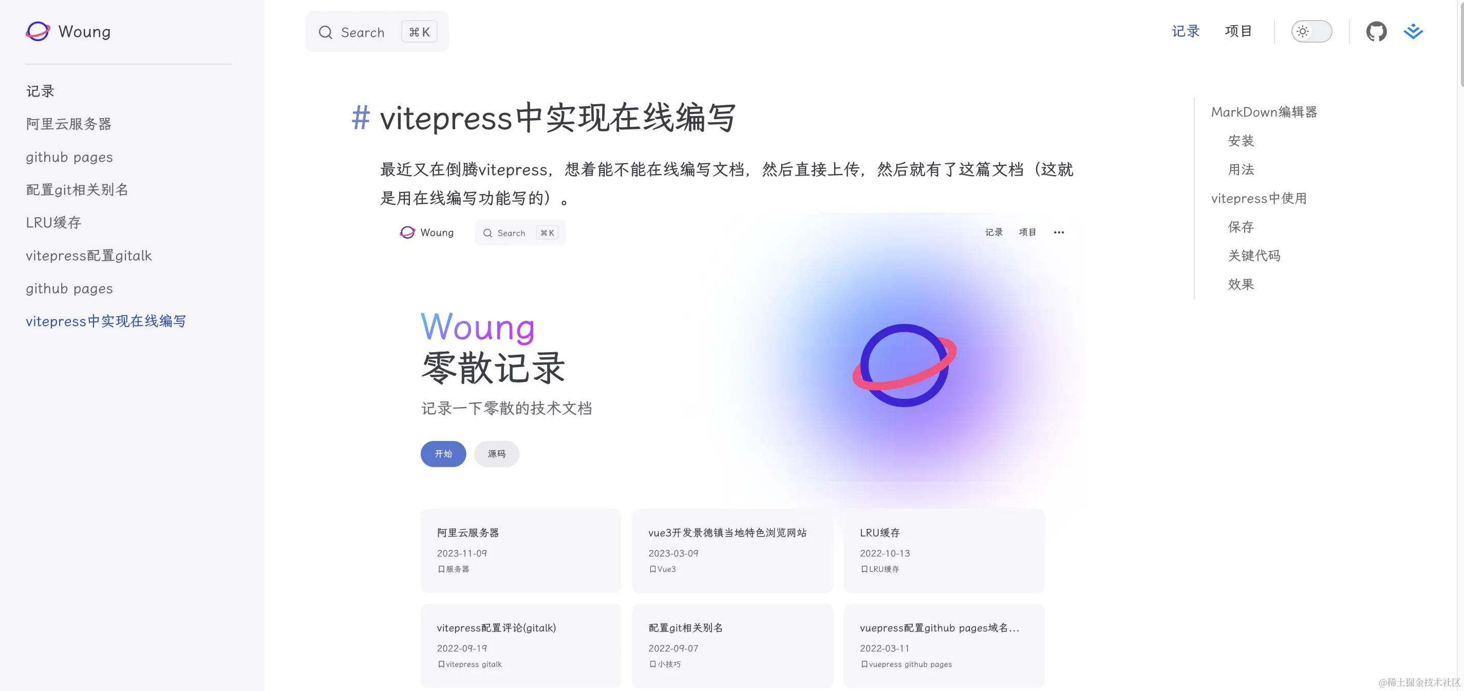 最近又在倒腾vitepress,想着能不能在线编写文档,然后直接上传,然后就有了这篇文档(这就是用在线编写功能写的)。