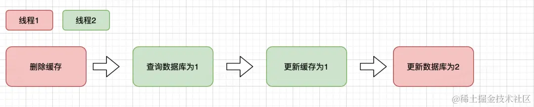 举例:如果在两个操作之间发生了数据查询,那么会有旧数据放入缓存。