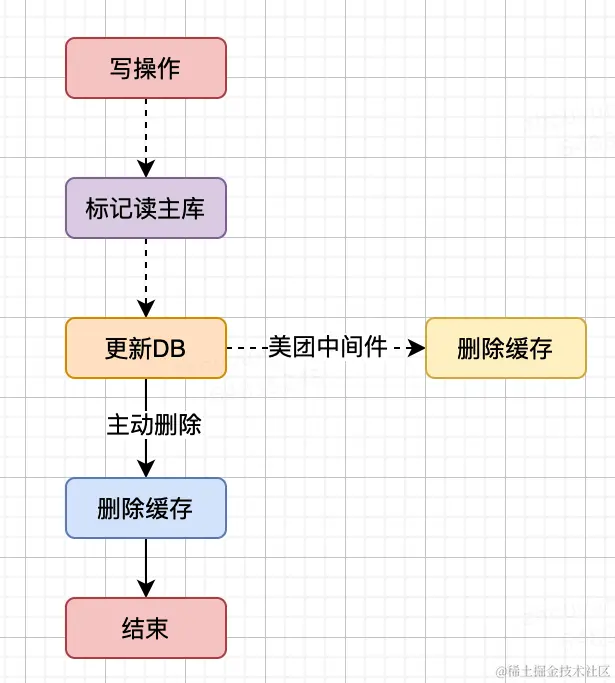 - 写操作都标记key(美团中间件)强制走主库