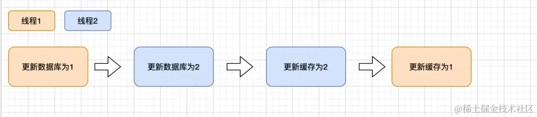 举例:如果在两个操作之间数据库和缓存又被后面请求修改,此时再去更新缓存已经是过期数据了。