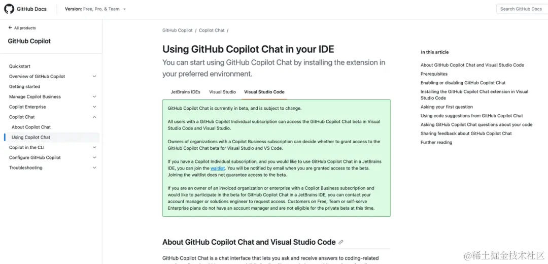 Copilot Chat 允许开发者使用自然语言编写和理解代码。用户可以与 Copilot 聊天,这是一个利用 OpenAI 的 GPT-4 模型的 AI 助手,可以使用 Copilot Chat 解释复杂概念,根据打开的文件和窗口建议代码,帮助检测安全漏洞,并帮助查找和修复代码、终端和调试器中的错误。