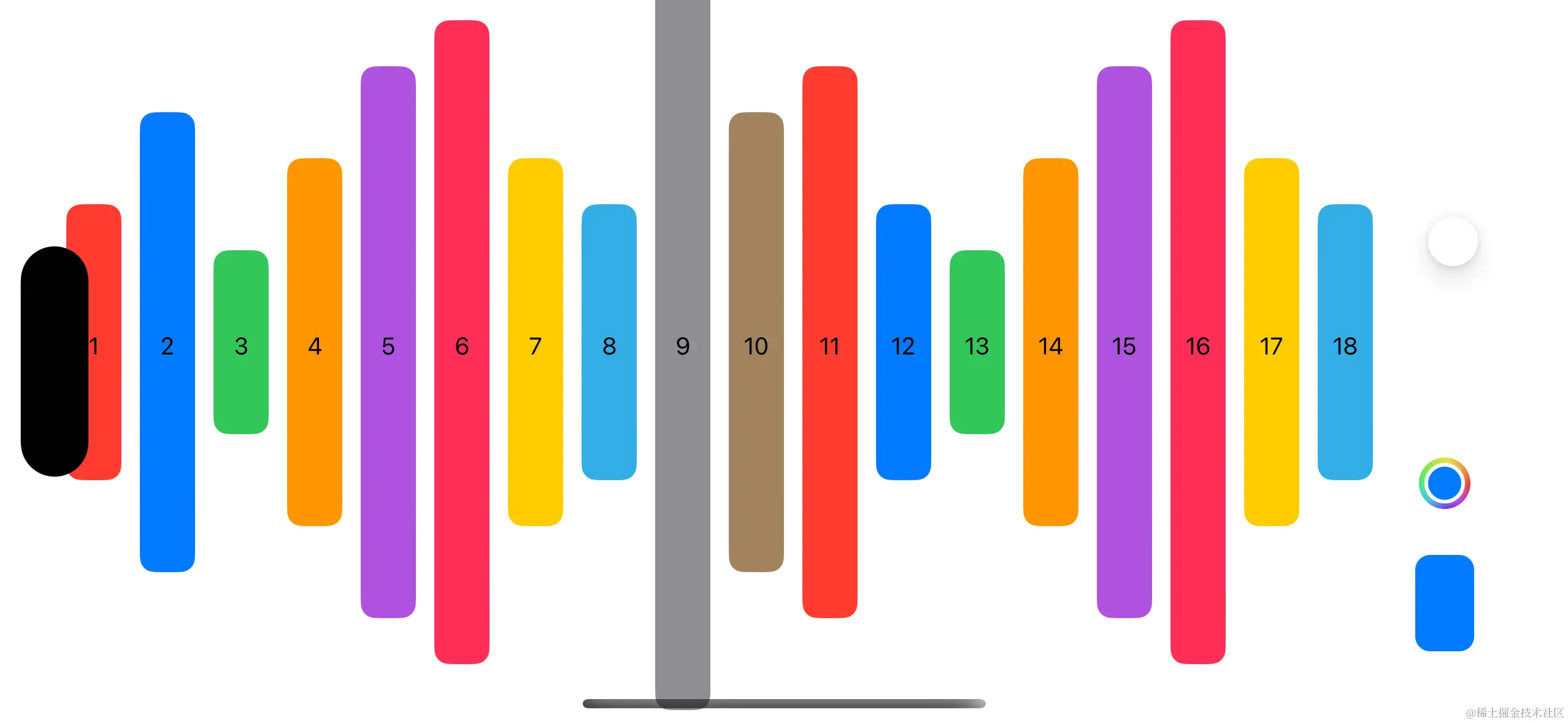 如上例所示,我们有一个 BarChartView,它接收一组 DataPoint 实例并将它们显示为水平堆栈中不同高度的圆角矩形。