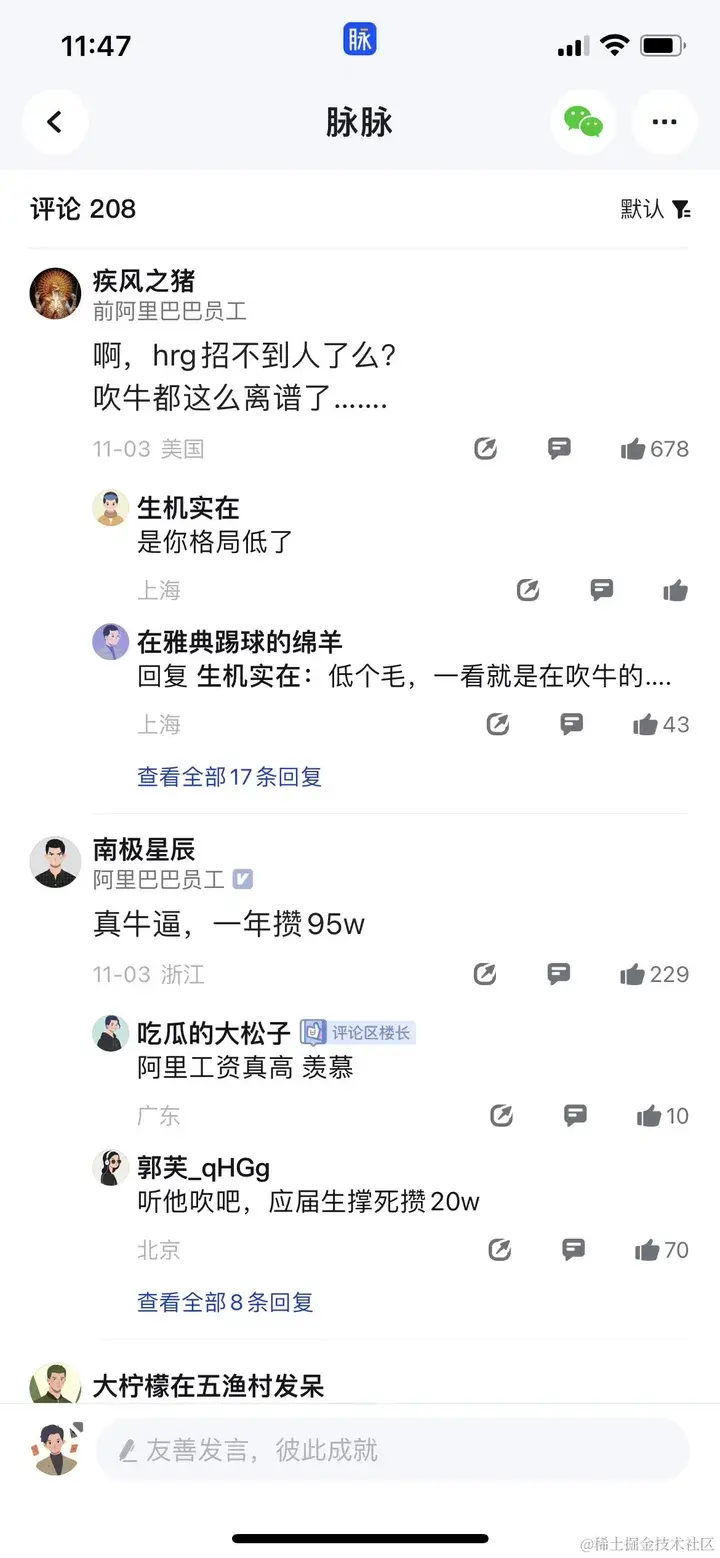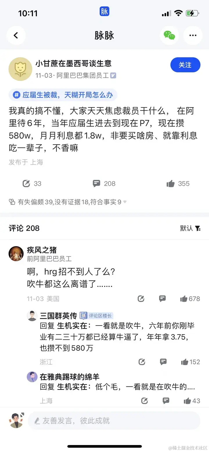 还有网友认为是阿里的HRG招不到人了,所以跑网上来发软文的,这个我觉得肯定不是。