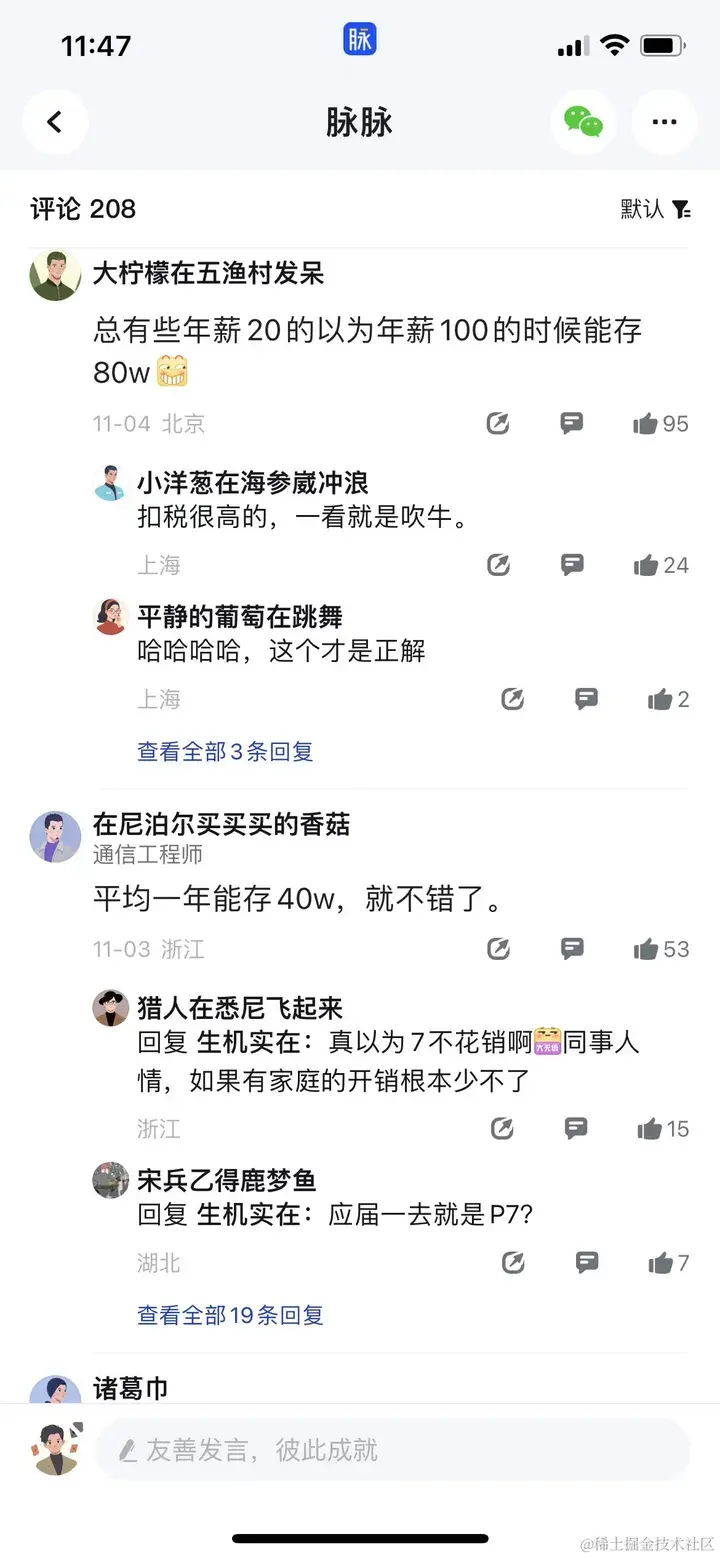 所以,听起来阿里P7年薪百万,其实刨去打怪升级的时间,以及扣税花销的费用,其实存不了特别多的钱。