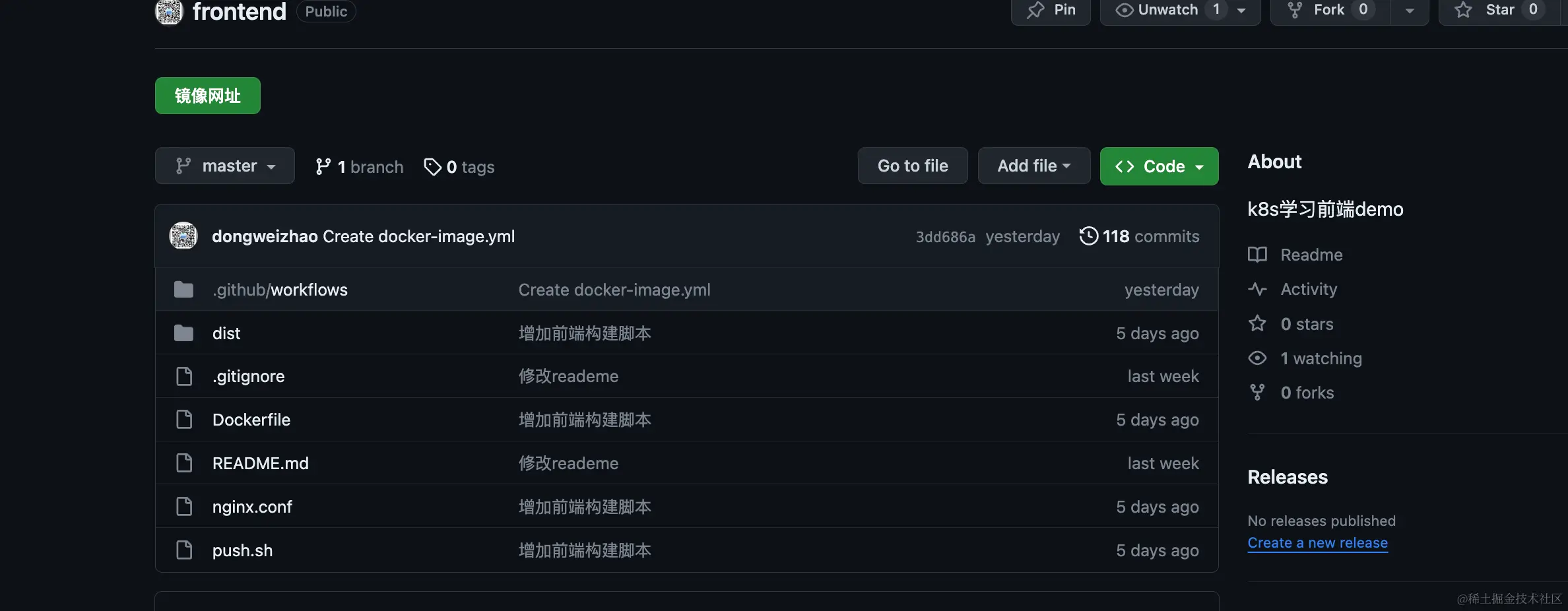 我们会构建一个前端工程的docker镜像,并推送此镜像至DockerHub仓库,同时在k8s中拉取并运行验证