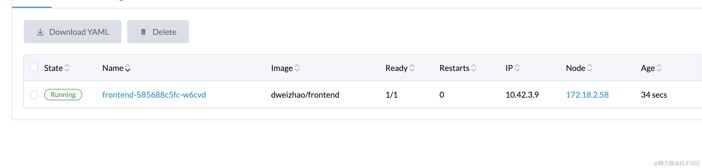 我们创建了frontenddeployment,同时指定了镜像为dweizhao/frontend:latest