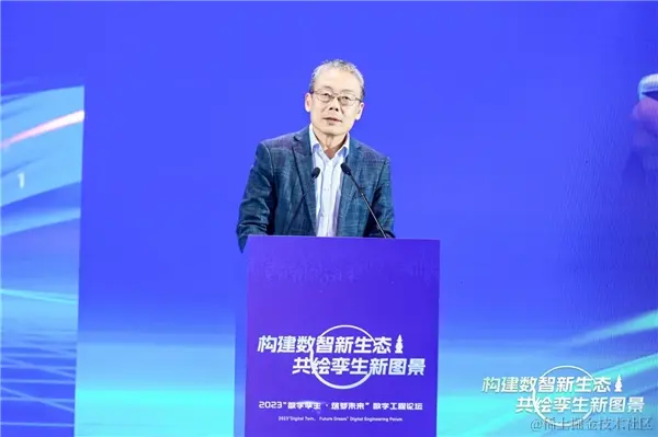 中国电力建设集团有限公司首席科学家、首席技术专家张春生代表华东院致开幕辞,并作主论坛主旨演讲。主旨演讲回顾了华东院20年来的数字化道路,多年来,华东院坚持“科技至上、技术立院”,全力向具有全过程智慧化服务能力的一流国际工程公司迈进。在巩固水电、抽蓄、海上风电等能源核心业务的同时,推进水电与新能源、城乡建设、生态与环境三大业务领域的全产业链能力建设,以服务工程,促进人与自然和谐发展为使命,不断推进数字化进程。他提出,华东院将继续积极投身自主建筑工业软件研发,深化合作伙伴关系,携手业界同仁共同探索工程建筑行业的新技术应用,构建数智新生态。同时,以国产BIM核心软件为基础,以BIM+AI能力为中枢,以行业共性需求为牵引,实现工业数字孪生新图景,共同见证行业数字化新时代的到来。