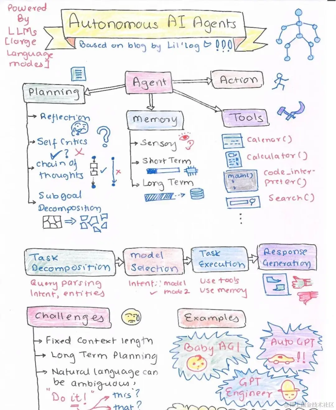 由大型语言模型驱动的自主 AI Agent是AI创新的巅峰之作。 它们在规划、记忆和工具使用上的能力,加上无缝的工作流程,为各行各业带来了令人激动的新可能性。随着我们继续挖掘这些AAA系统的潜力,我们可以期待一个AI驱动的效率和问题解决能力达到空前水平的未来。这不仅是机器执行任务,更是思考、记忆和适应的机器,这场AI革命势不可挡(庄周 前沿技术汇)。