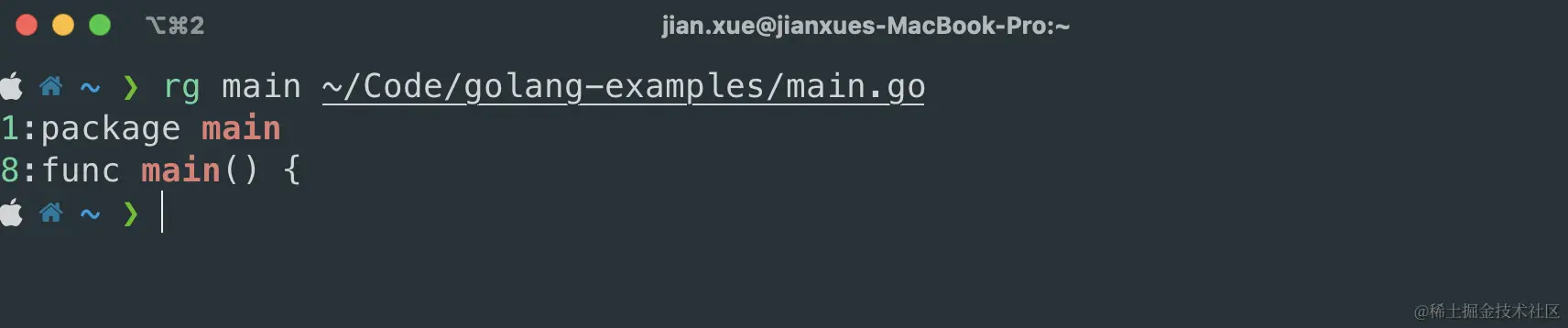 rg main ~/Code/golang-examples r main # 只替换输出,未修改文件