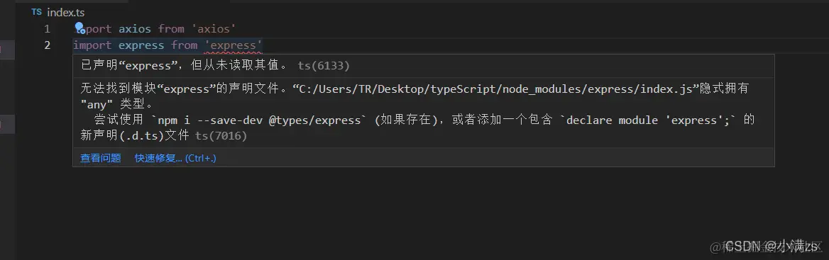 当使用第三方库时,我们需要引用它的声明文件,才能获得对应的代码补全、接口提示等功能。