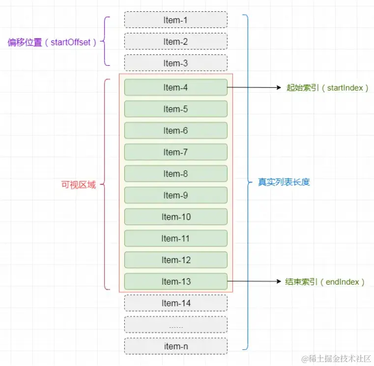 - 偏移量startOffset = scrollTop - (scrollTop % itemSize);