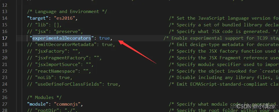若要启用实验性的装饰器特性,你必须在命令行或tsconfig.json里启用编译器选项