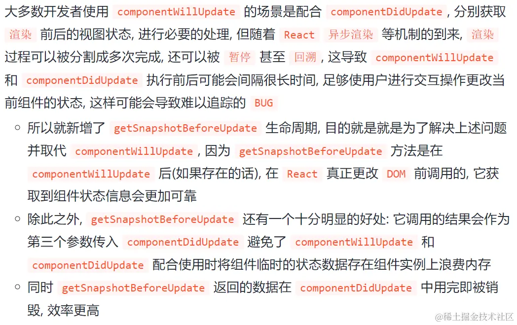 - 增加 getDerivedStateFromProps 和 getSnapshotBeforeUpdate 生命周期 。