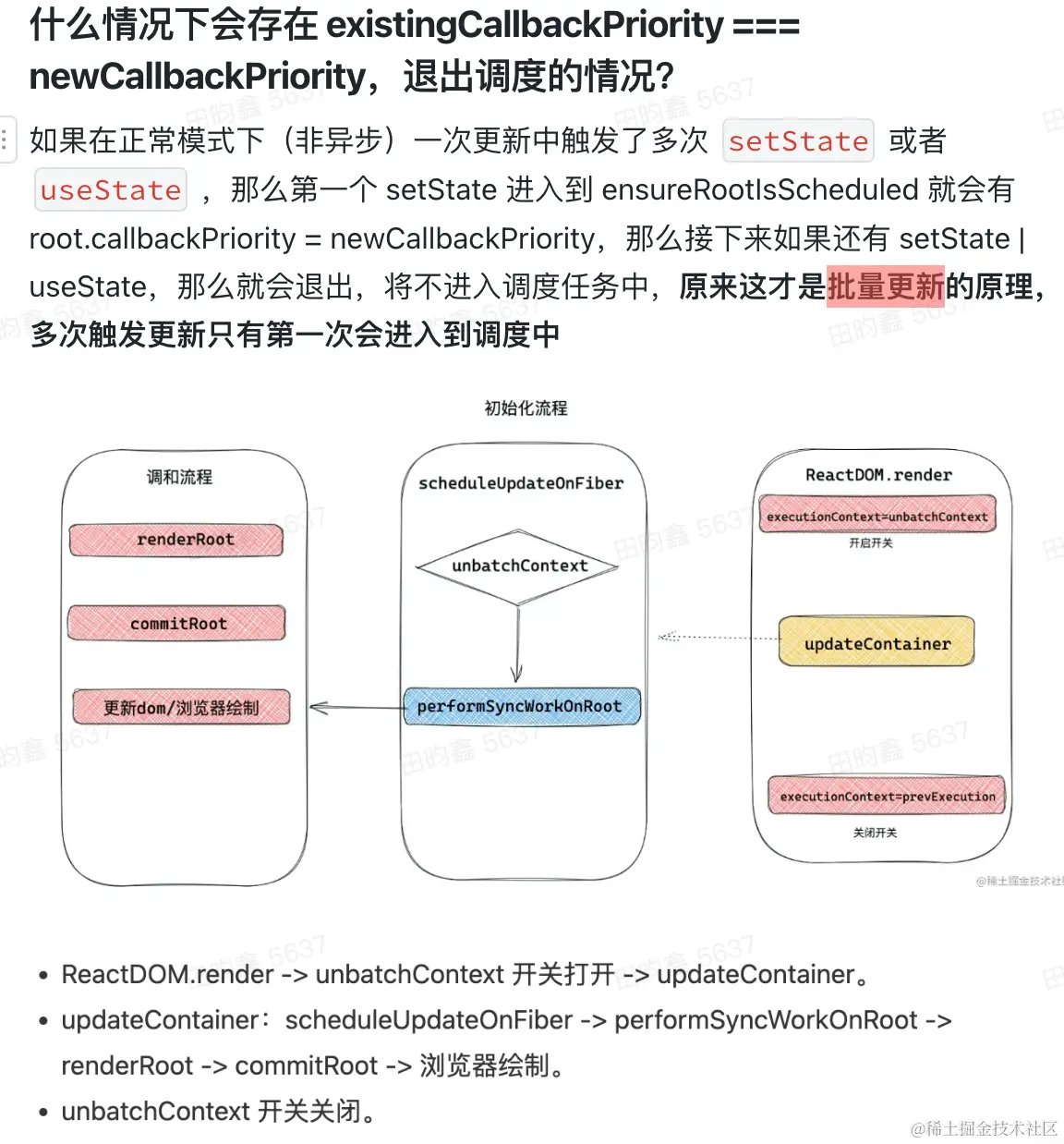 - setState和useState()更新视图,底层都调用了scheduleUpdateOnFiber方法,而且事件驱动情况下都有批量更新规则