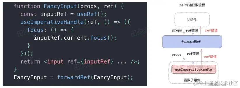 - 因为本质上是产生了一个新组件,所以需要配合 forwardRef 来转发 ref
