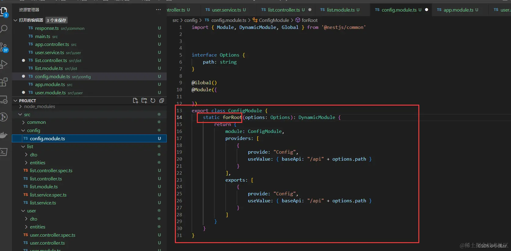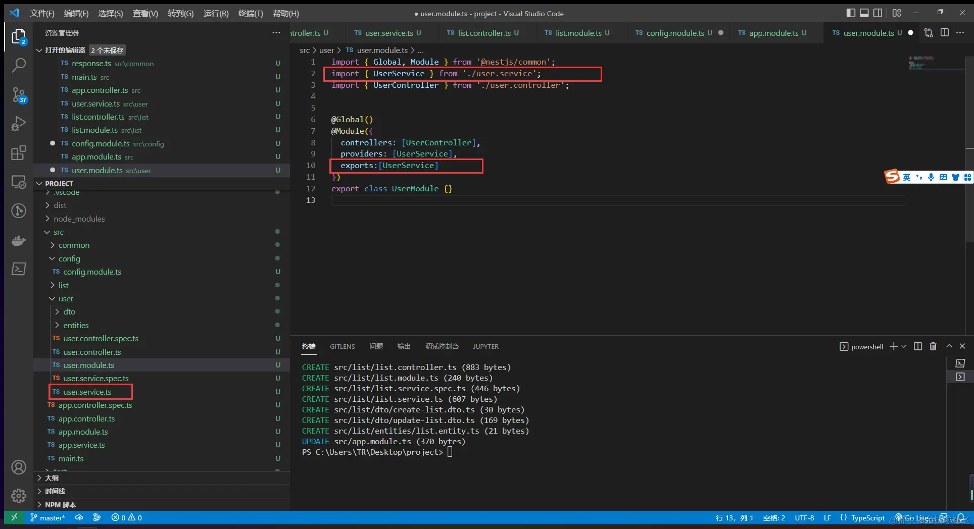 例如 user 的 Service 想暴露给 其他模块使用就可以使用exports 导出该服务