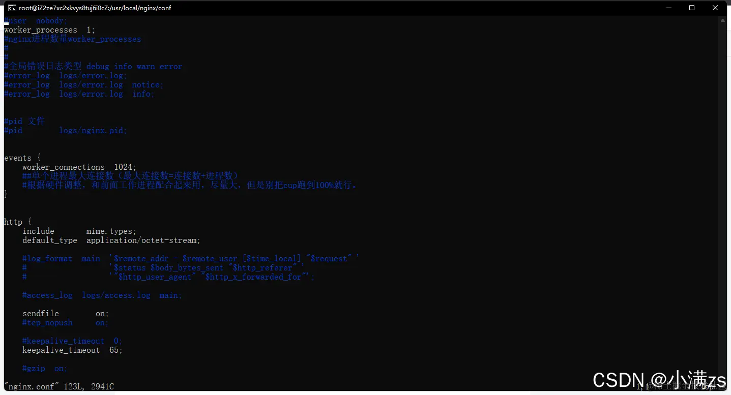 Nginx的主配置文件是nginx.conf,这个配置文件一共由三部分组成,分别为全局块、events块和http块。