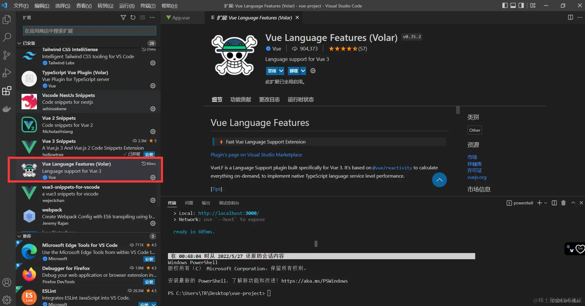 与vetur相同,volar是一个针对vue的vscode插件,不过与vetur不同的是,volar提供了更为强大的功能(使用的时候需要把vetur 设置为禁用状态)